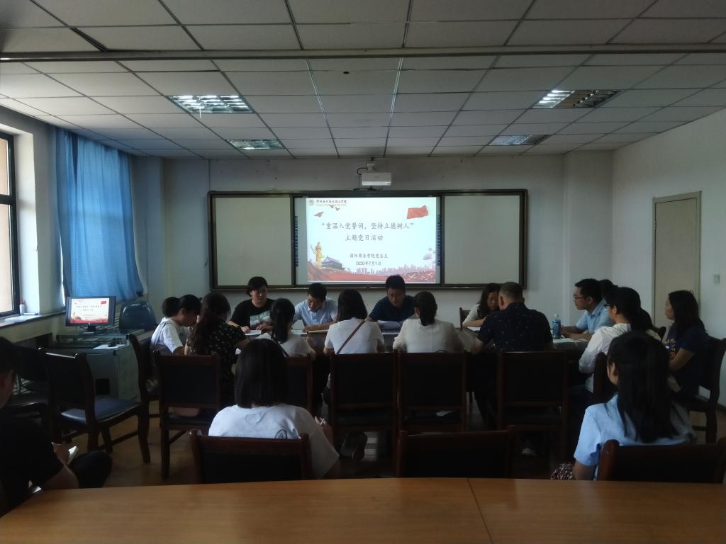 7月1日下午,体育平台官网教工党支部在主教学楼二楼举办“重温入党誓词,坚持立德树人”主题党日活动,公司全体教工党员参加.