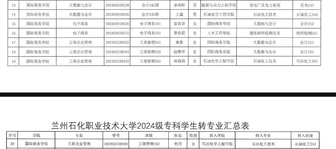 2025年春季学期转专业员工名单